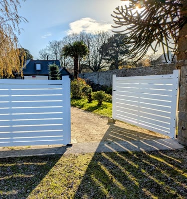 Conception et installation de terrasses en bois, portails, cabanes de jardin, clôtures, abris, bardage. Nous créons des aménagements extérieurs solides et élégants, adaptés au climat des Côtes-d’Armor (22).